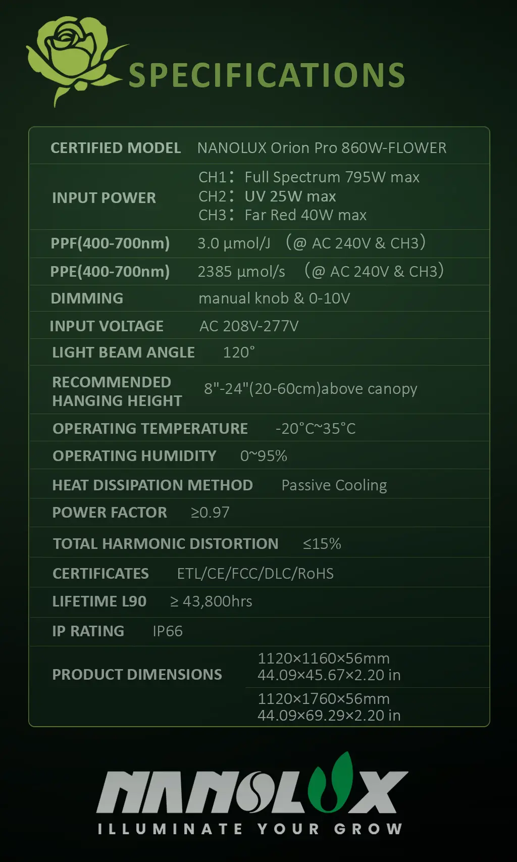 • Slim Design: Ultra-thin 2.2” profile for vertical farms and low-ceiling spaces.